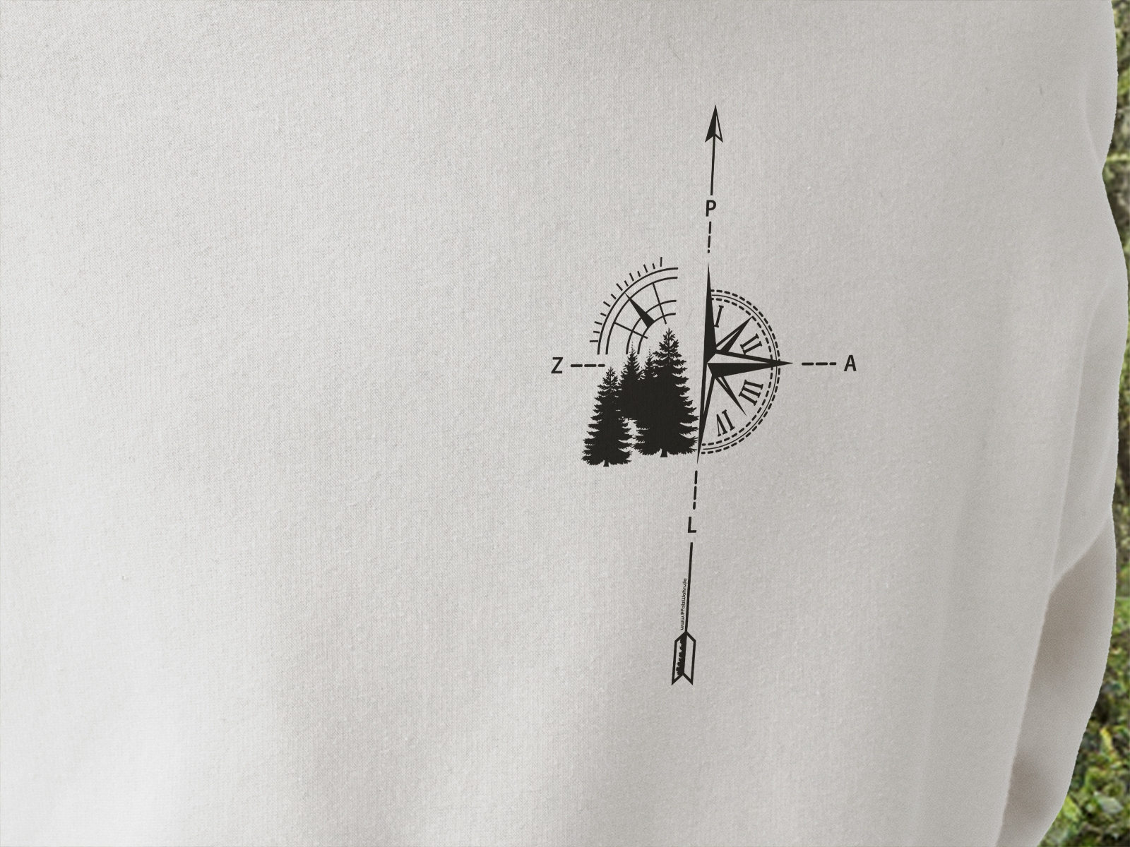 Lass deinen Hoodie dir den Weg zeigen mit unserem "Kompass" Design. Dieses einzigartige Motiv mit einem Kompass und den Tannen, welche den Pfälzerwald symbolisieren stellt deine Verbundenheit zur Natur dar. Hergestellt aus hochwertiger Baumwolle und in den Farben Schwarz und Weiß erhältlich, bietet dieser Hoodie nicht nur Stil, sondern auch höchsten Tragekomfort. Hol dir deinen Wegweiser jetzt!