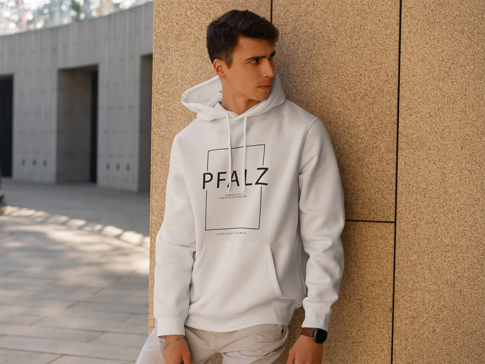 Unser "PFALZ - Dehäm in de Palz" Hoodie vereint modernes und stilvolles Design mit einem liebevollen Statement zur Heimat. Der große Schriftzug "PFALZ" und der kleinere Untertitel "Dehäm in de Palz isses doch am schenschde" machen diesen Hoodie zu einem perfekten Begleiter für jeden Pfälzer. Hergestellt aus hochwertiger Baumwolle, in den Farben Schwarz und Weiß, und in den Größen S bis 4XL erhältlich, bietet dieser Hoodie sowohl Stil als auch Komfort.