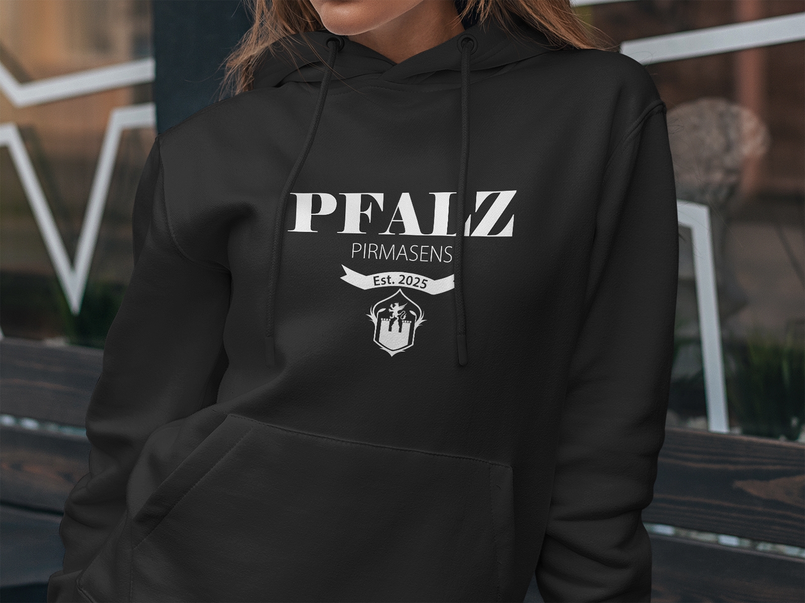 Erlebe den urbanen Charme der Pfalz mit unserem "PFALZ - Pirmasens" Damen Hoodie. Zeige deinen Lokalpatriotismus stilvoll und bequem. Der markante Schriftzug macht diesen Hoodie zum Hingucker. Perfekte Kombination aus Komfort und Design. Verfügbar in Schwarz und Weiß, Größen XS bis XXL.